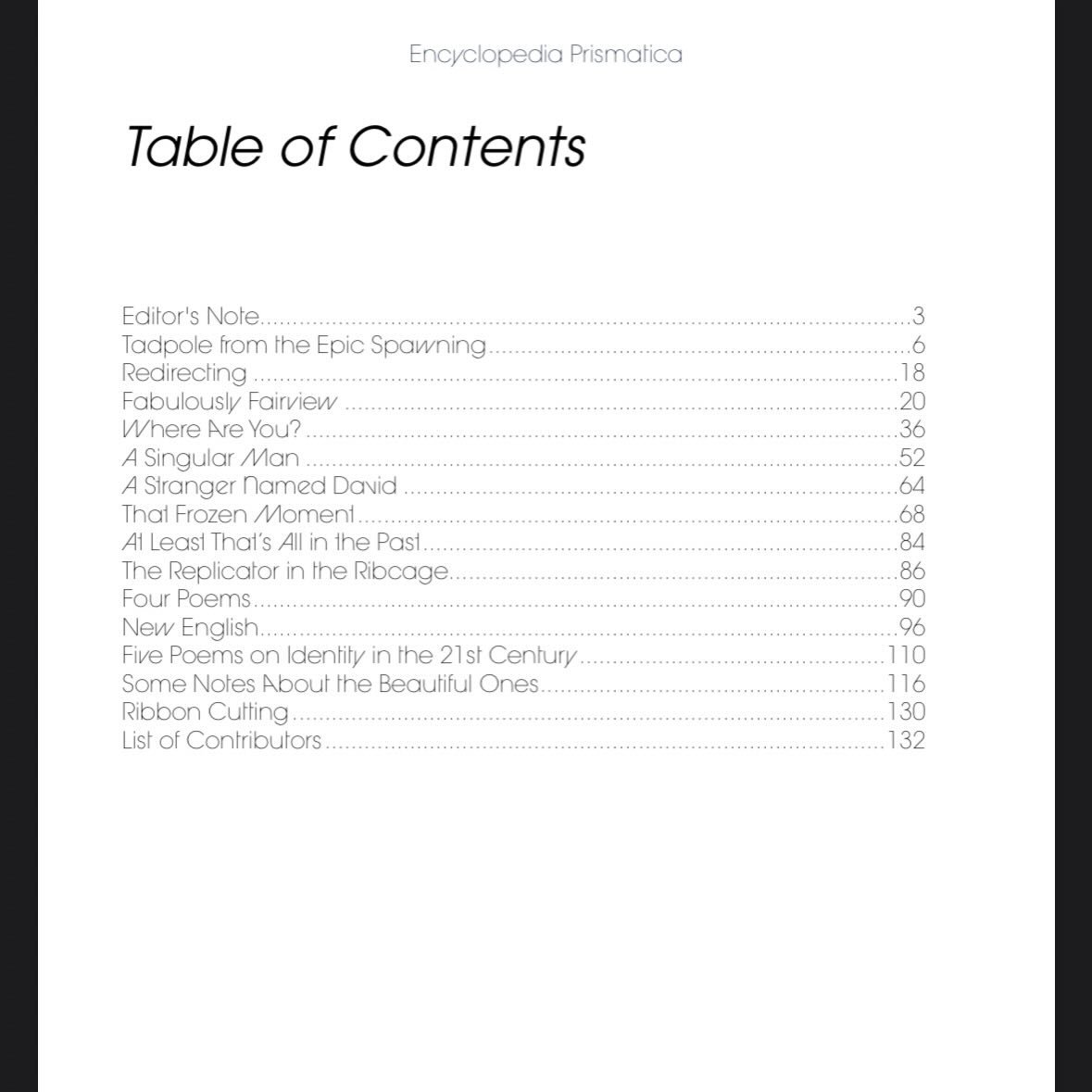 We are not here to entertain—we are here to disrupt forgetting. Encyclopedia Prismatica invites essays, poetry, fiction, and visual art that trouble the ordinary, complicate certainty, and awaken readers from the sleep of habitual thought. We seek the politically aware and the philosophically precise, but also the strange, the tender, the raw. We do not ask that you take a side. We ask that you take part. Read like an archaeologist, not a tourist.